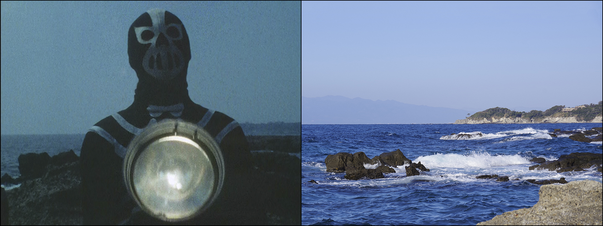 戦闘員が立っている岩場は三浦半島にある黒崎海岸。シリーズでは本エピソードロケで初使用されて以降は定番化、ストロンガー最終回では7人ライダーが集結する地として使われている。